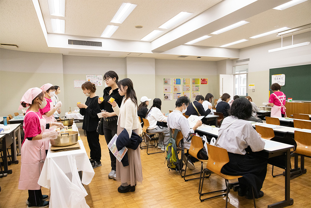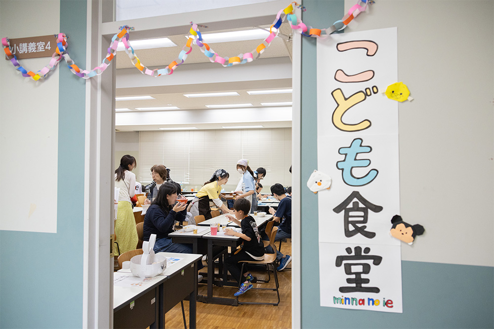 no ie」の学生たちによる「子ども食堂」です。大人300円で、子ども一人分は無料!前身の川崎市立看護短期大学の卒業生のメンバーも交えて、楽しそうにキビキビと調理や給仕にあたっていました。