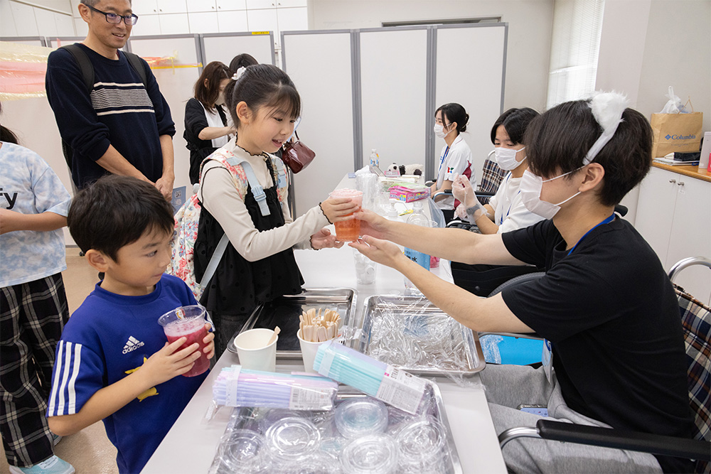 地域貢献委員会の学生たちは、ふだんから大学周辺の地域の方々や団体と関わりを持っています。例年、青朋祭ではそうした方々にご協力いただいた多彩な企画を実施しています。今年も「南加瀬こども文化センター」、竹細工サークル「かたつむり」、「みゆき作業所」、「セルプきたかせ」、さらに、「とりかえるこれいるか」と共同出展しました。