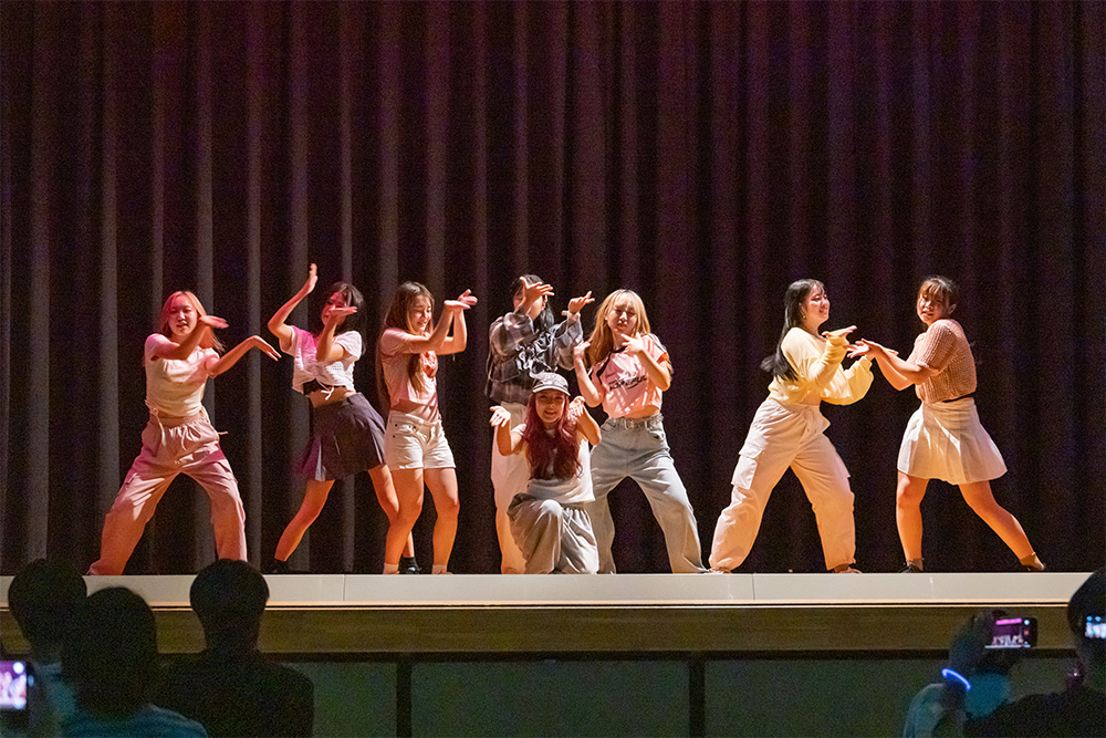 体育館に設けられたステージでは3団体が素晴らしいパフォーマンスを見せてくれました。学生有志による「ダンスステージ」は堂々としたパフォーマンスを披露。今年度結成された「演劇サークルA.C.T」は、"幽霊"が登場するちょっとシュールなコメディ劇を上演しました。